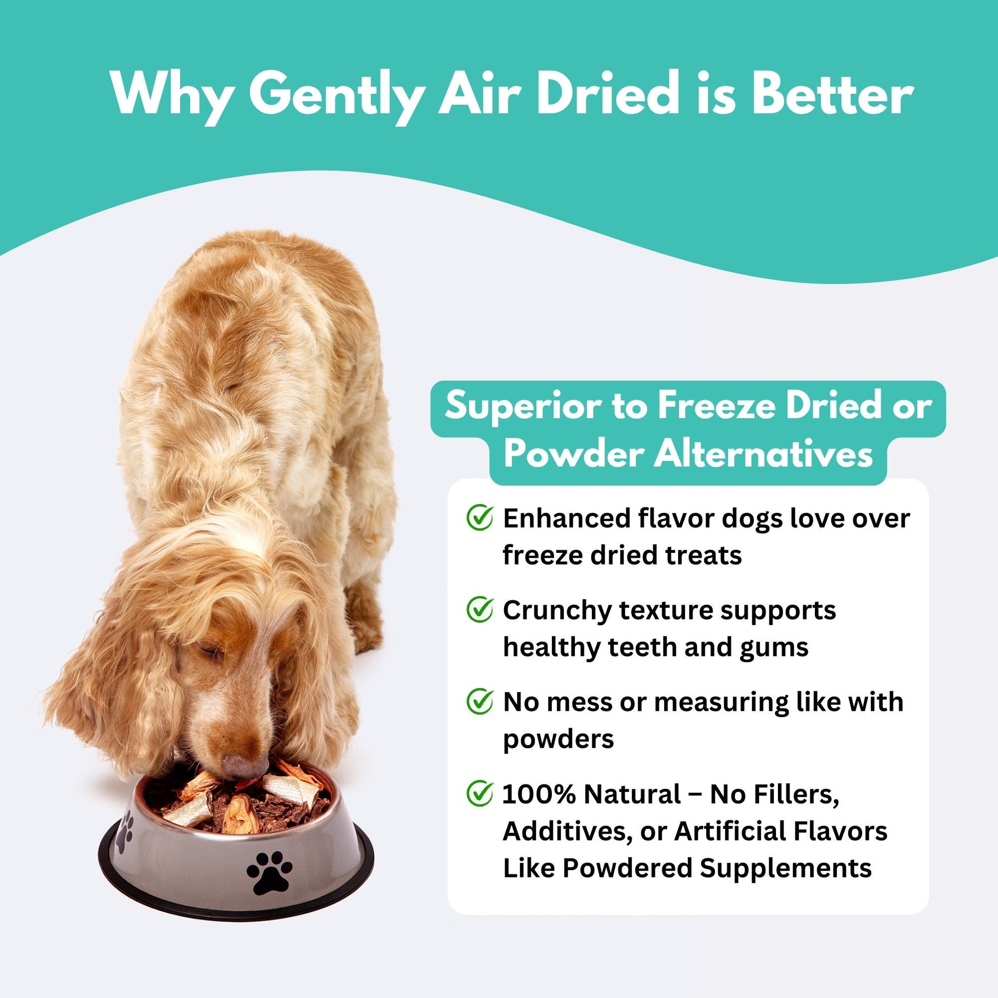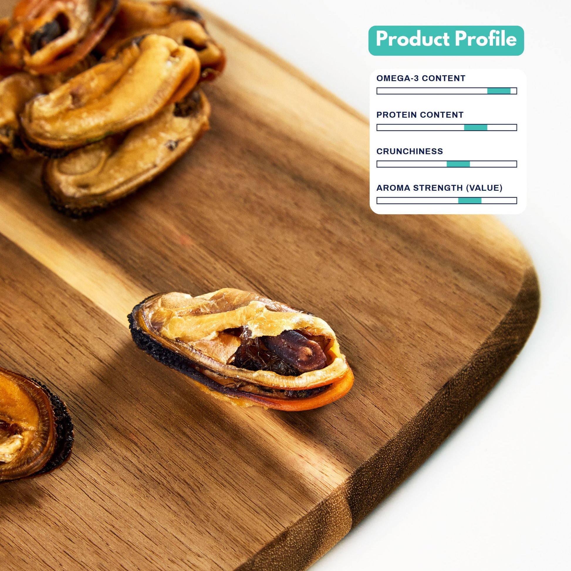 Premium air-dried New Zealand Green-Lipped Mussels for joint support and overall vitality. A single-ingredient, nutrient-dense treat packed with natural Omega-3s, glucosamine, and chondroitin to promote mobility, healthy skin, and digestion.